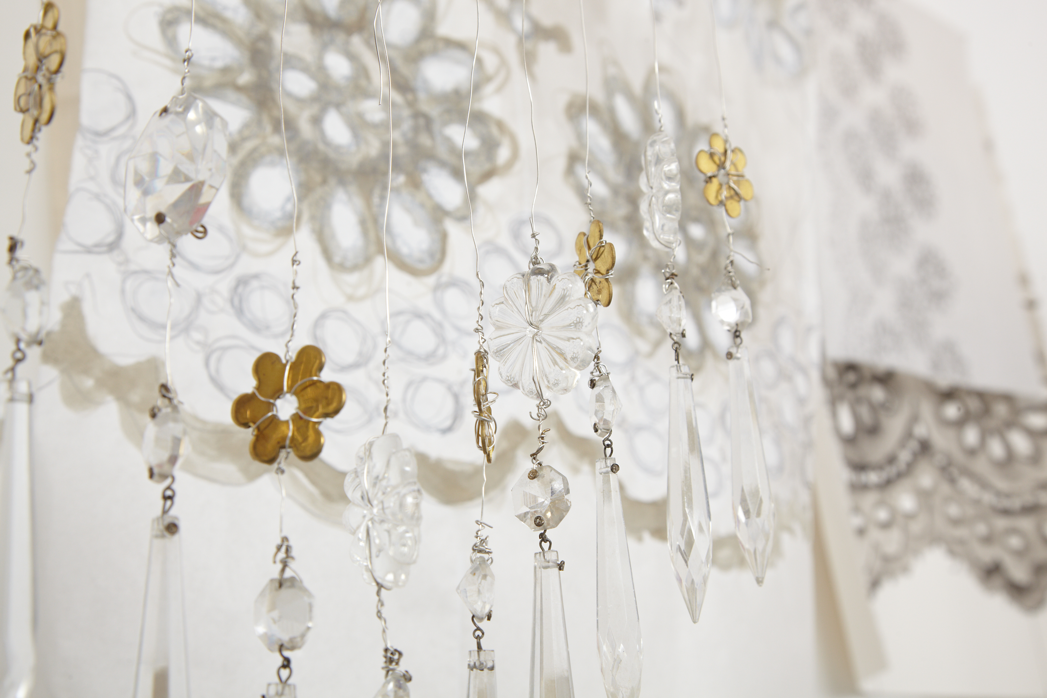 Couture focus on drawing and stitching as a performative act of memory. Tapping into her French working-class background, the artist reconfigures her mother’s school stitching exercises, collection of fabrics and objects from the family home – to create drawing and stitched artworks in the form of temporary installations.