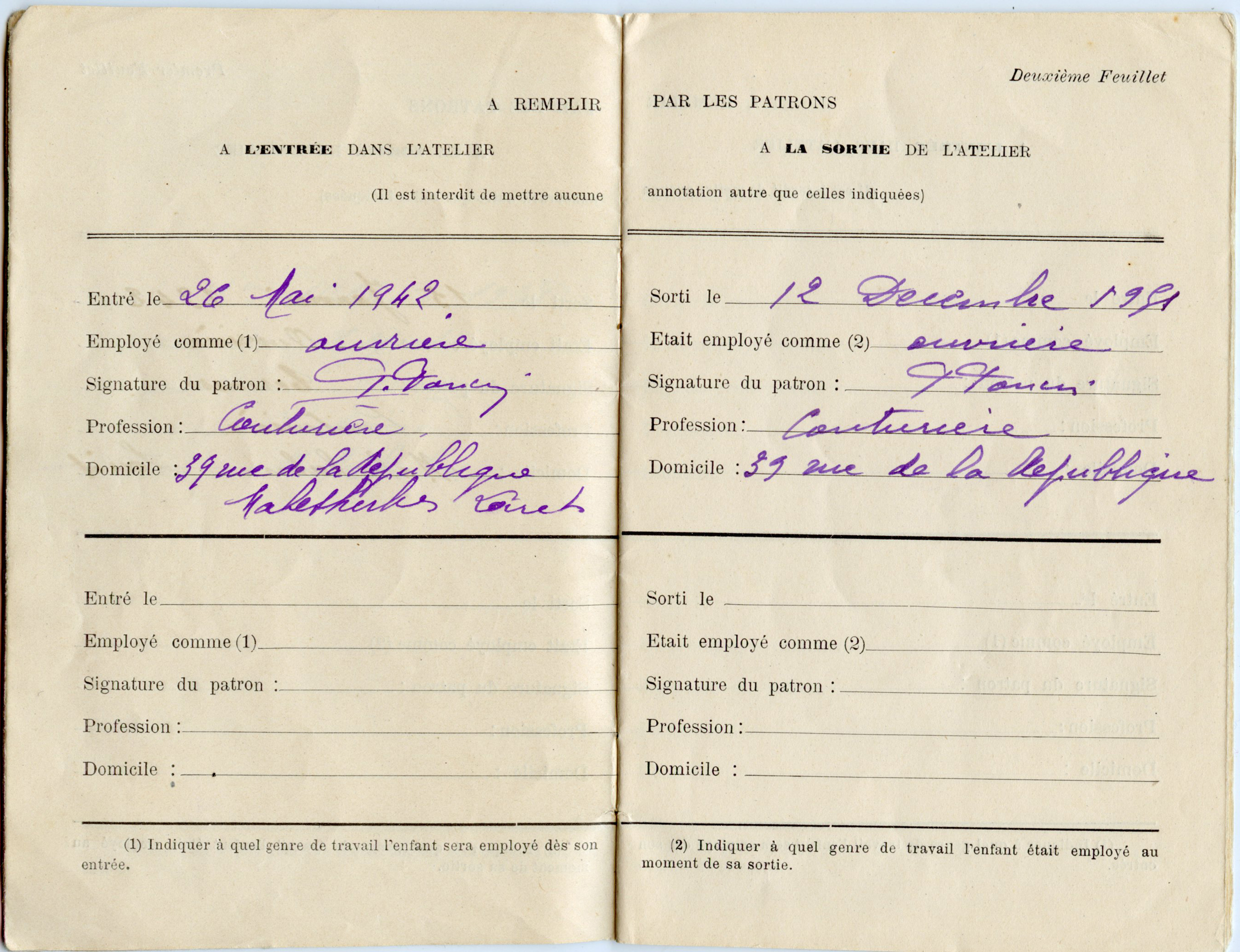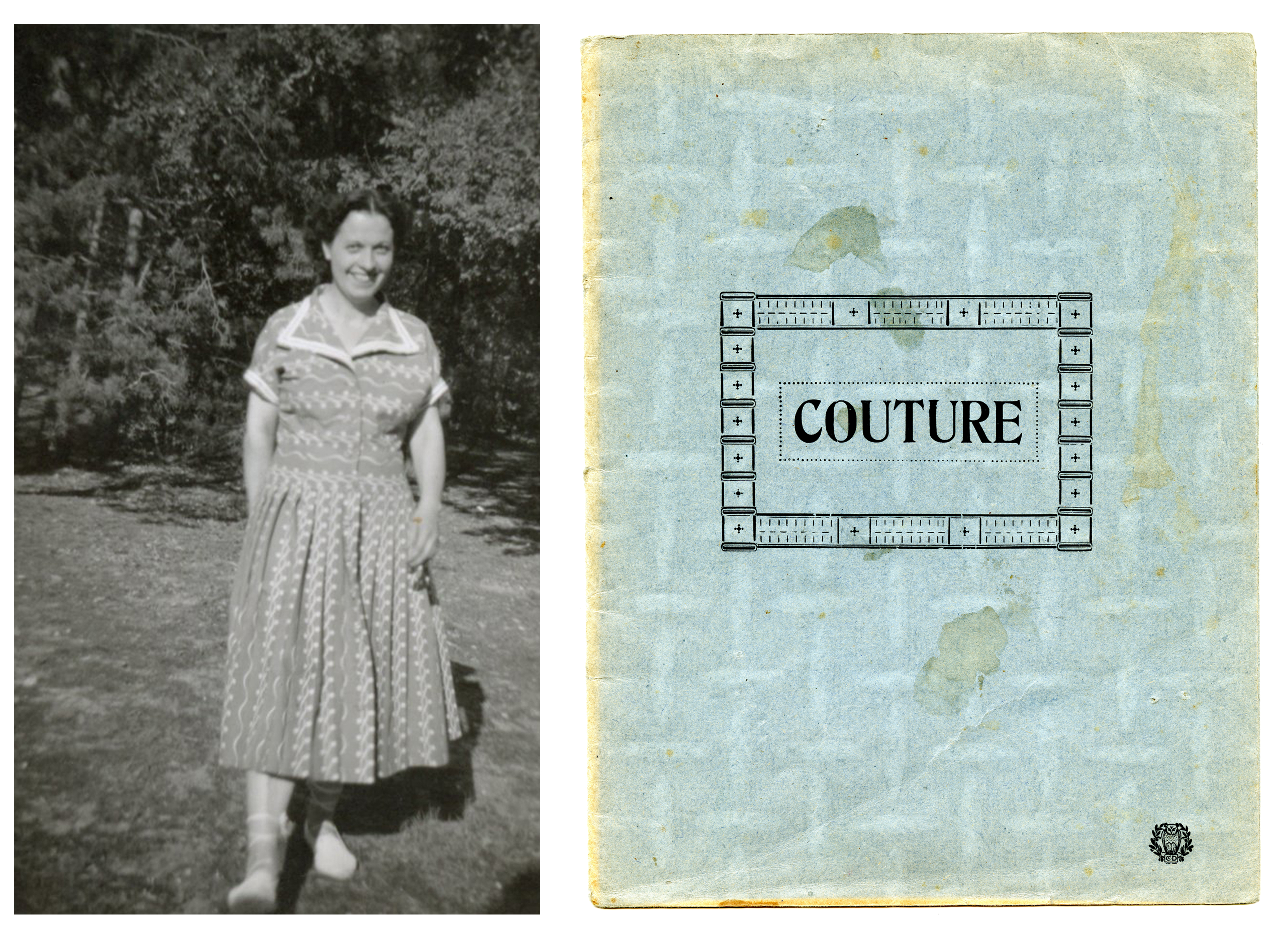 Paulette left school at fourteen, to follow an apprenticeship and become a highly accomplished professional seamstress/couturière, working between 1938 and 1951 for a dressmaking business run by Madame Terrasse then Madame Poncin, Malesherbes, Loiret, France. Once married (1951) and living in Paris, Paulette became an independent dressmaker until the 60s when prêt à porter took over, making her redundant. Paulette went on to work for a small lighting manufacturer then a printing factory. She continued until late in her life to make her own dresses, and her daughter’s.