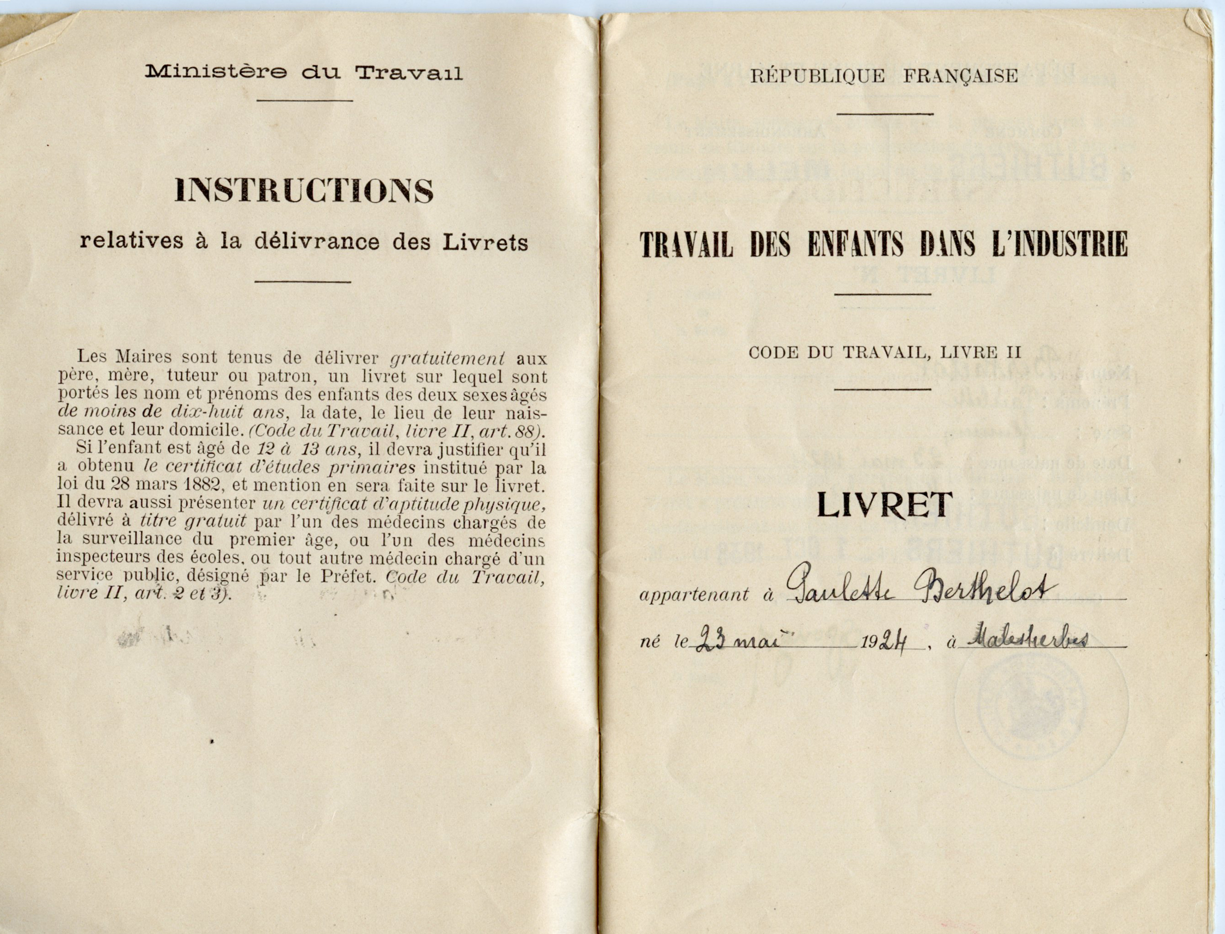 Paulette’s apprentice work log book