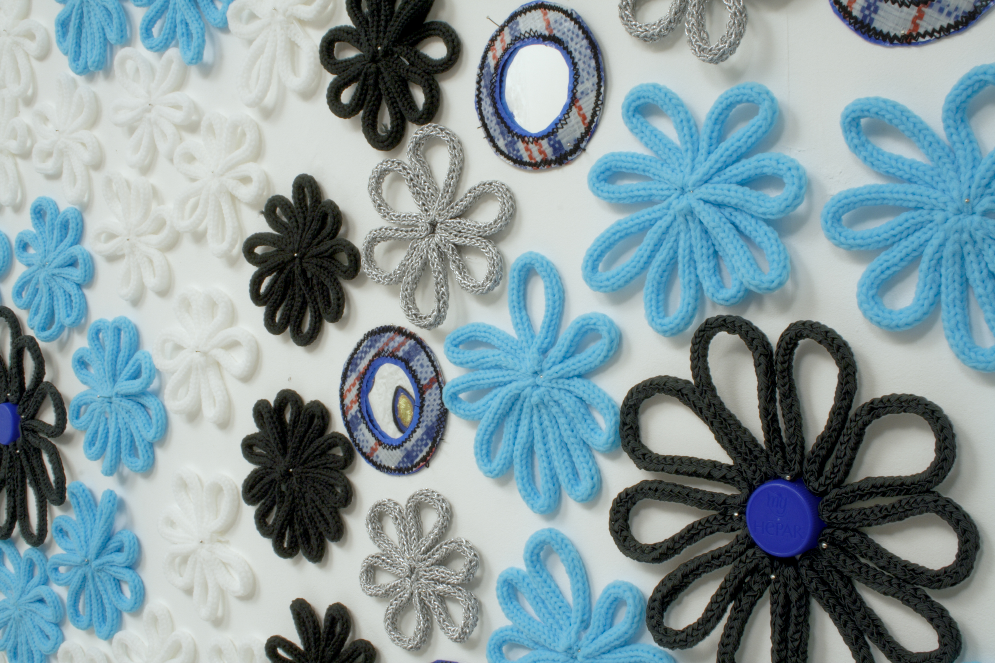 Fleur bleue, 2007. Wall installation for the international and touring group exhibition Radical Lace & Subversive Knitting at the Museum of Arts and Design, New York (2007-2009, New York and touring USA).