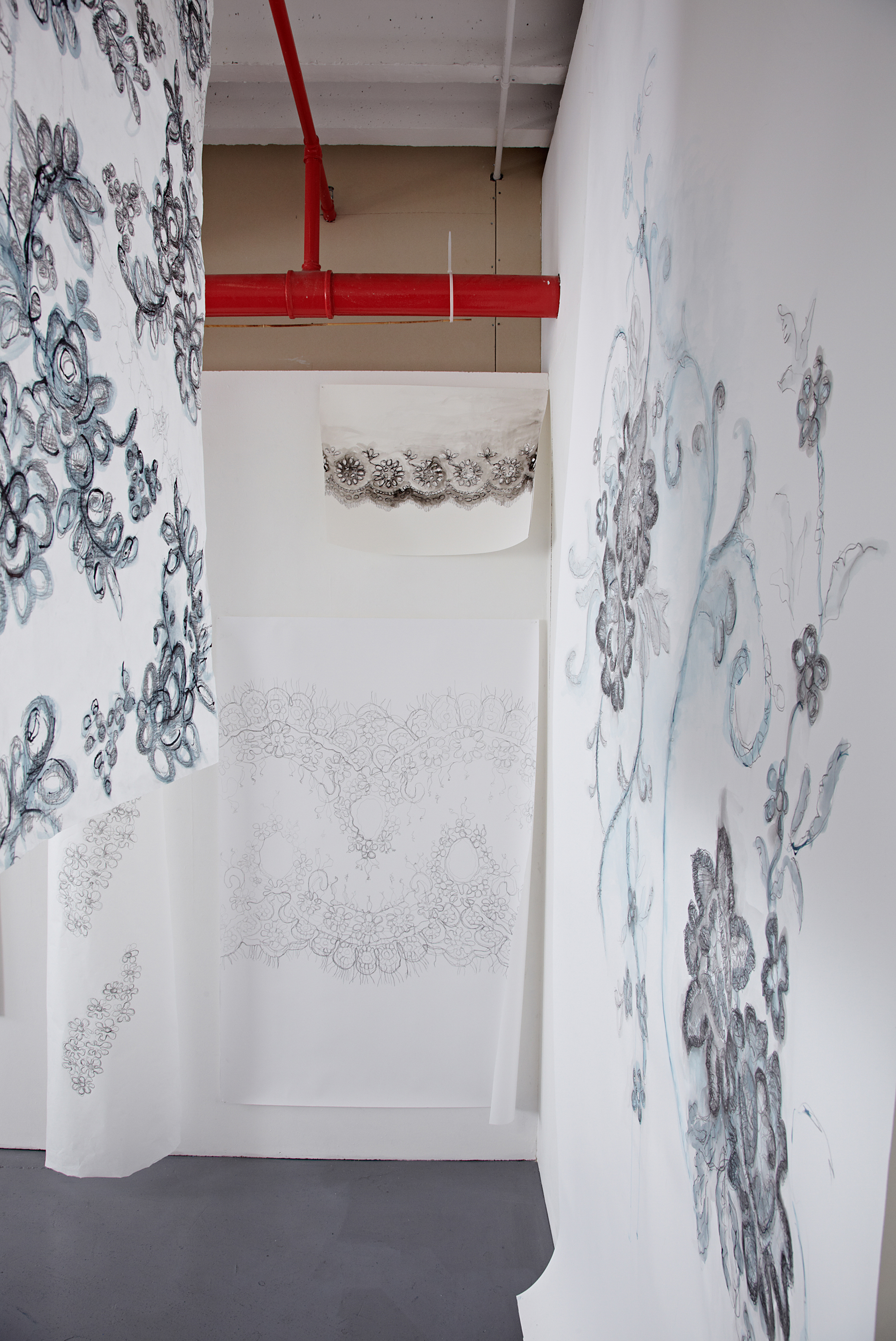 Tracing lace, 2017. Studio installation.